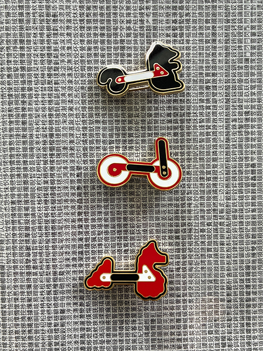 City Super 2025 Edition of 50 3 enamel pins 1.25 in each Enamel pins with German safety pin back in perforated letterpress card Made in Taiwan Drawn from children’s playground seesaws in Yongkang Park, Taipei Order (USA) Order (Intl) Order (Intl tracking) Terms |