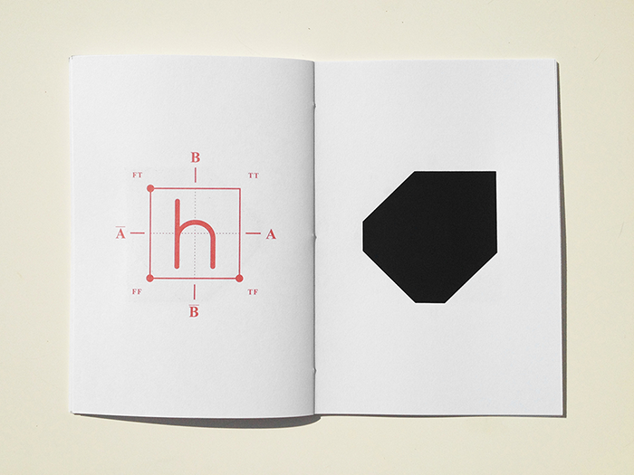The Logic Alphabet 2013 Edition of 10 26 pages 8.5 × 10 in Stitchbound inkjet print and hand silkscreen From the Logic Alphabet of Dr. Shea Zellweger |
