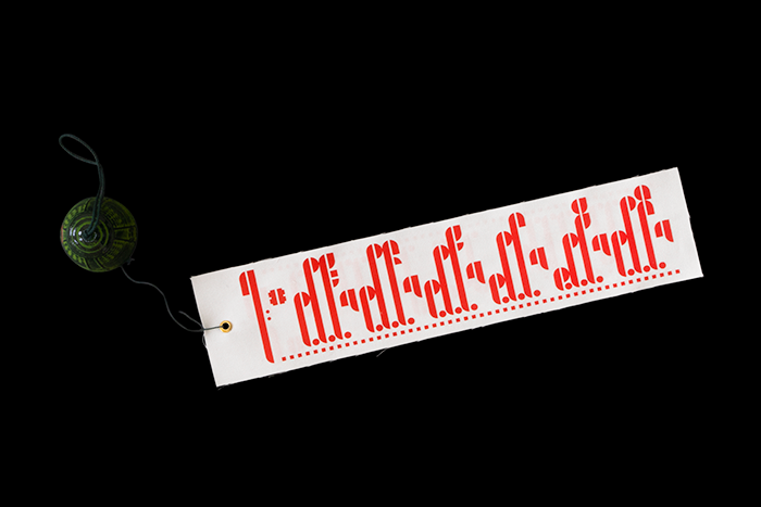 Vapor Trail 2022 Edition of 4 + 2 AP Tag 2.5 × 11 in Bell diameter 1.625 in Nambu cast iron wind chime with 2-sided hand silkscreened cotton tag Opening melody of Joe Hisaishi’s “A Town with an Ocean View.” |