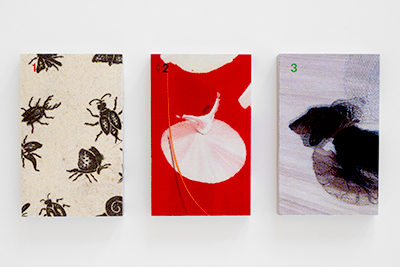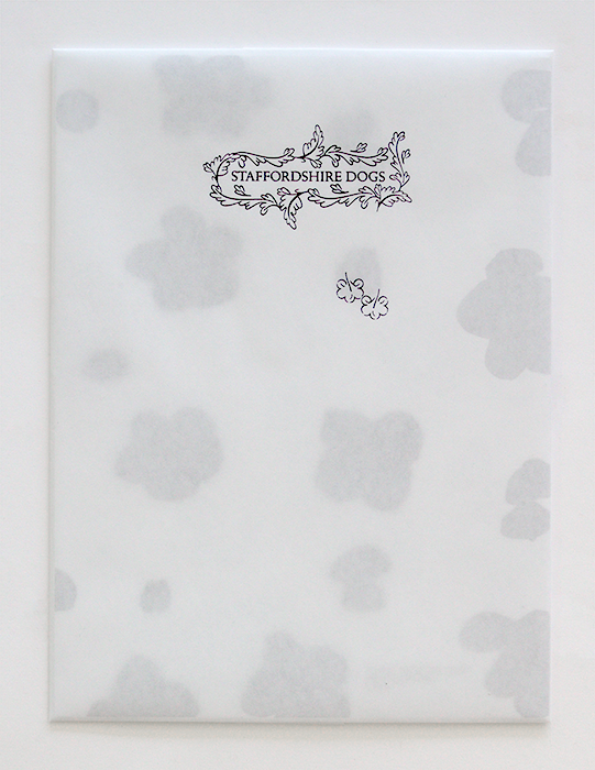 Staffordshire Dogs 2019 Edition of 18 + 3 AP 20 pages 9 × 12 in 8 × 10 in C-print Stitchbound digital offset print and single C-print in hand silkscreened butcher paper wrapping Paintings by Miles Jopling |