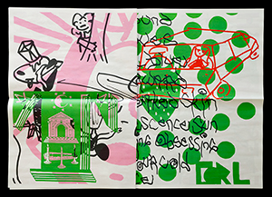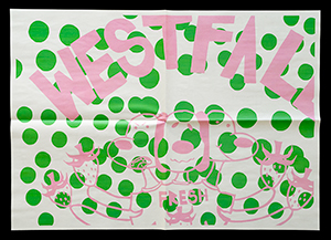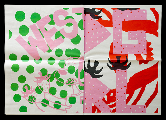 2024 Edition of 100 Folded broadsheet 16 pages / 8 posters 27.5 × 19.7 in (flat) Digital on newsprint Drawings by Brett Westfall and Moon Westfall Available at Dover Street Market Paris |