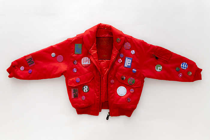 Cocos Frios 2024 K.73r button pins on vintage flight jacket |
