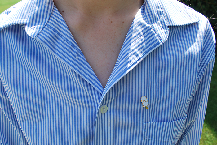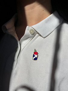 Cigarette, a cup of tea, a bun... 2019 Edition of 50 1 in enamel pin 8.5 × 10.5 in poster Enamel pin in sketch paper poster |