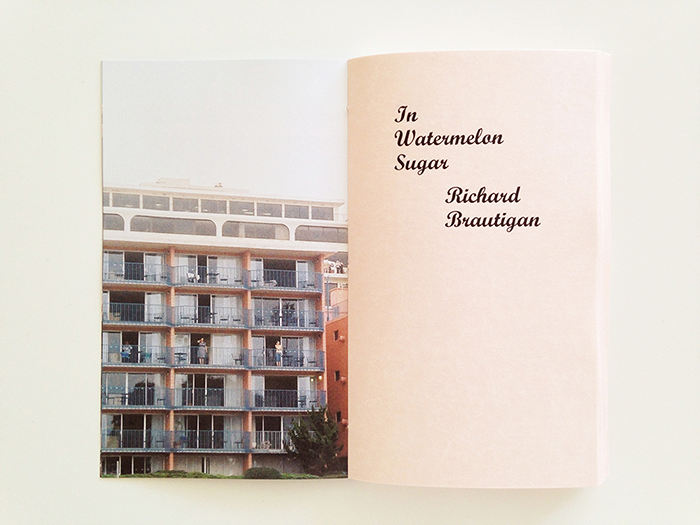 In Watermelon Sugar 2014 Edition of 10 164 pages 5 × 8.5 in Stitchbound digital and inkjet print Text by Richard Brautigan |