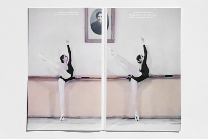 Светлана 2016 Edition of 20 20 pages 5.5 × 8.75 in Stitchbound digital print Svetlana Zakharova in Vaganova Academy 1996 final exam; Russian translation of Depeche Mode’s “Strangelove” Special thanks to Viktor Alekseyev for his help with the translation |