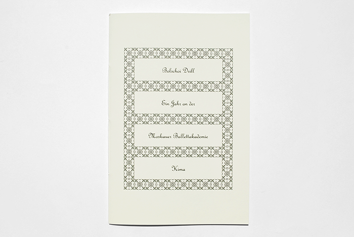 Bolschoi Drill Ein Jahr an der Moskauer Ballettakademie 2016 Edition of 20 40 pages 6.5 × 9.75 in Stitchbound digital print Transcribed subtitles from the documentary |