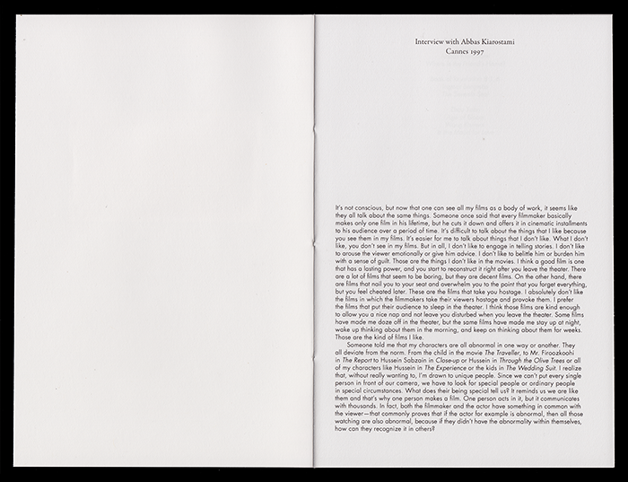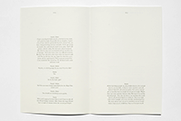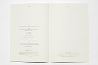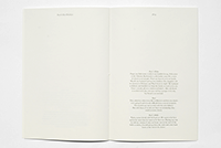 A few steps ahead, a cherry stone. In my mouth, the taste of cherry. A few steps behind, the cherry tree. 2017 Edition of 25 16 pages 5.25 × 8 in Stitchbound digital print with cover tipped-in plate Films from verse. Featuring Address, Sohrab Sepehri (Where is the Friend’s Home?, Abbas Kiarostami), Book of Revelation 8:1, 6 (The Seventh Seal, Ingmar Bergman), Age of Bloom, Zhou Xuan (In the Mood for Love, Wong Kar-wai). |