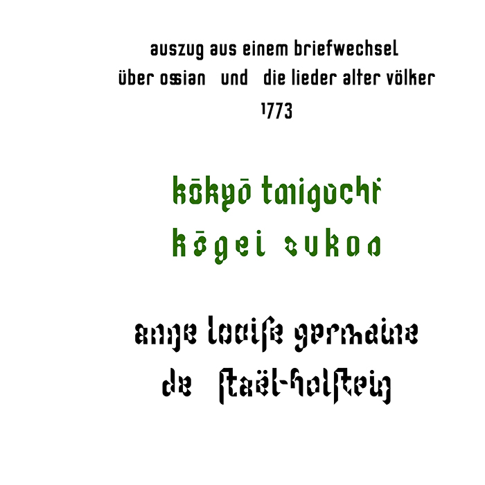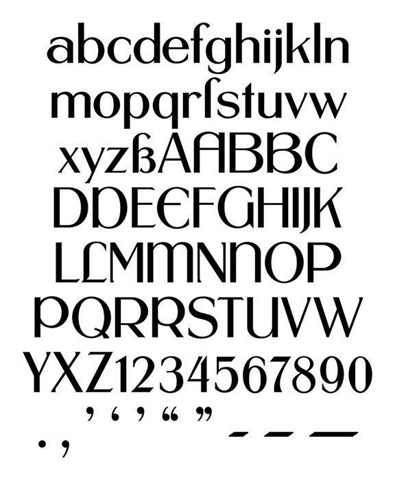 AB 1910 2017 Willi Wegener (Magdeburg) designed Alpha and Beta in 1910 for the Frankfurt type foundry Flinsch. This revival was created between 2016 and 2017 in Mar Vista, Highland Park, and Altadena, California. The letterforms and their alternates are drawn near-exact to his originals, and the ornaments are culled from different sources and time periods. As little is known about the original author, the gap in history is filled by interpretation. $10 Order Inquire for licensing |