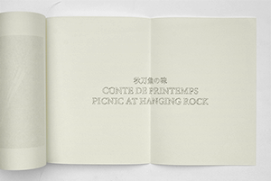 Film Drawings 2017 Edition of 20 + 10 AP 5 pages 9 × 11 in Stitchbound digital print Drawings by Theresa Guntli Interiors from An Autumn Afternoon (Yasujirō Ozu), A Tale of Springtime (Éric Rohmer), Picnic at Hanging Rock (Peter Weir). |