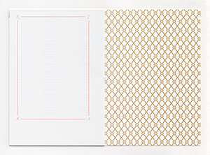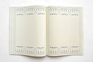 Sketchbook 2017 Edition of 10 102 pages 8.5 × 11 in Digital print with hand tape binding Decorative borders drawn from the illustrations and sketches of neoclassical French architect, interior decorator, and designer Charles Percier (1764–1838) |