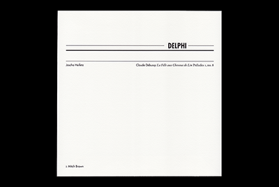 Delphi 1 2018 Edition of 20 + 5 AP 7” flexi disc 45 rpm Handmade cover with tipped-in C-print Cover photograph by Mitch Brown Debussy, La Fille aux Cheveux de Lin, Préludes 1, no. 8, played by Jascha Heifetz. |