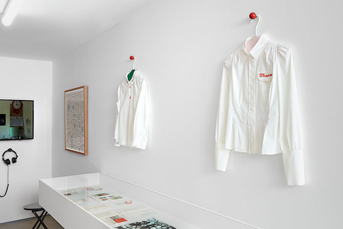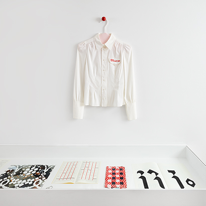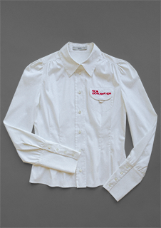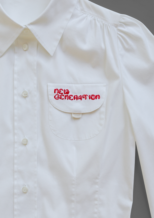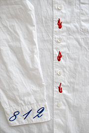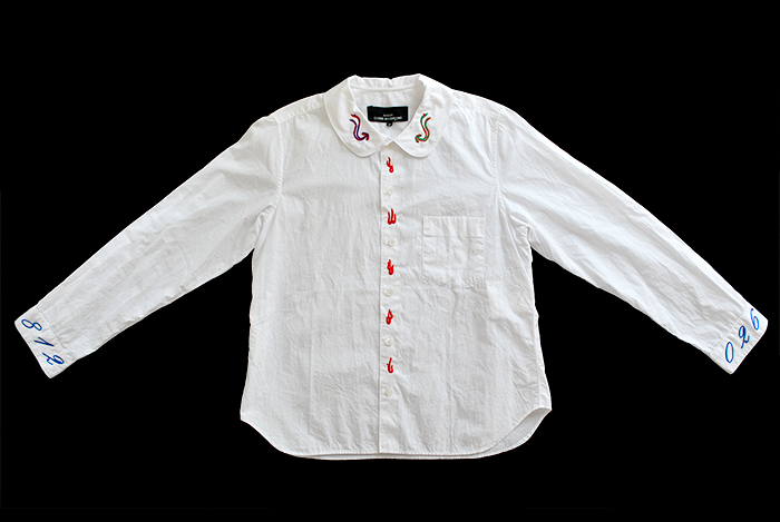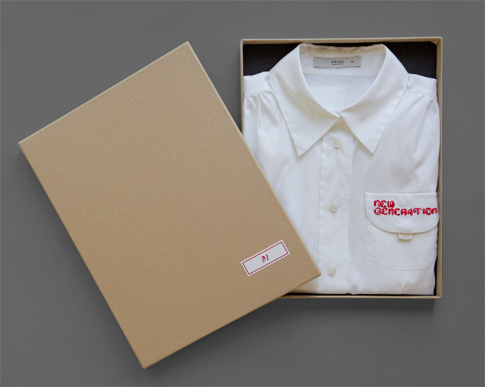 New Generation 2020 Hand embroidered vintage Prada shirt Kraft box custom drawn numerals after Wodan, Schelter & Giesecke. |