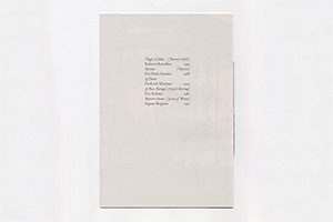 Avenue 2019 Edition of 15 12 pages 6.1875 × 9 in Stitchbound digital print Journey to Italy, Roberto Rossellini, 1954; Theorem, Pier Paolo Pasolini, 1968; La Danse, Frederick Wiseman, 2009; A Good Marriage, Éric Rohmer, 1982; Secrets of Women, Ingmar Bergman, 1952. |