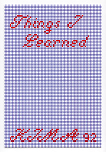 Things I Learned 2020 Edition of 16 12 pages 7.375 × 10.75 in Hand silkscreen each page on stitchbound high gloss digital print Cover lettering from Johann Schönsperger the Younger’s 1529 edition of Ein new getruckt model Büchli: earliest known textile pattern book and first printed fashion publication. Order (USA) Order (Intl) Order (Intl tracking) Terms |