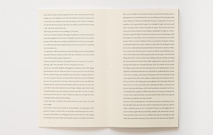 Zhang Da 2014 Edition of 30 16 pages 9 × 12 in Stitchbound digital print Chinese and English Interview with the fashion designer fromView International Fashion & Fabrics, 2008 |