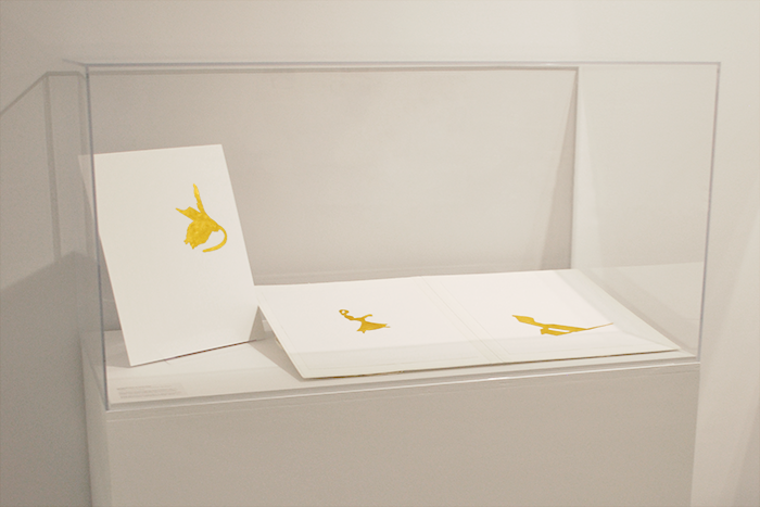 2016 Suite of 3 prints 14 × 17 in (prints) 16 × 20 in (portfolio) Gold leaf on board in handmade encasing with twill closures With Harsh Patel |