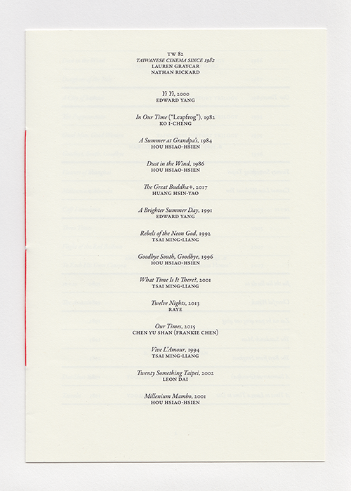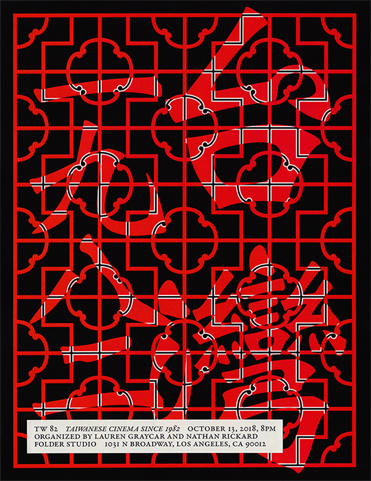 Taiwanese Cinema Since 1982 October 13, 2018 8pm Screening organized by Lauren Graycar and Nathan Rickard Folder Studio 1031 N Broadway Los Angeles |